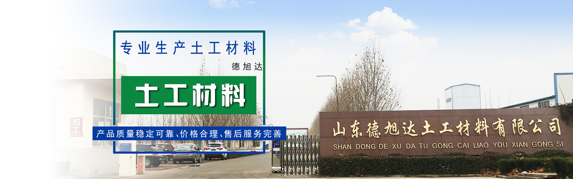 山東德旭達(dá)土工材料有限公司是目前規(guī)模較大,品種較全的土工合成材料專業(yè)生產(chǎn)企業(yè),是全國土工合成材料生產(chǎn)基地重點(diǎn)企業(yè)之一,注冊(cè)資本為5070萬元,占地面積120畝,現(xiàn)有員工100余人,其中各類專業(yè)技術(shù)人員40多人。 地理位置優(yōu)越,交通十分便捷。山東德旭達(dá)土工材料有限公司位于西漢大文學(xué)家東方朔故里,魯西北著名歷史名城—德州 市陵城經(jīng)濟(jì)開發(fā)區(qū)。京滬高速鐵路依縣而過,京福高速公路、德煙鐵路、京滬鐵...【了解更多】